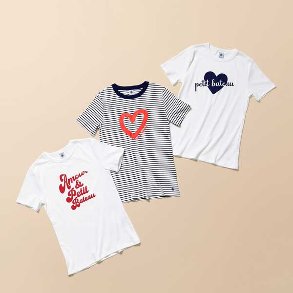 POP UP限定アイテム3型を含むプチバトーのアイコニックなTシャツや、⽇本で企画⽣産したスウェットやユニセックスなTシャツなどの⽇本限定アイテム、プチバトーならではのキュートなプリントが特徴のパジャマなどが並びます。