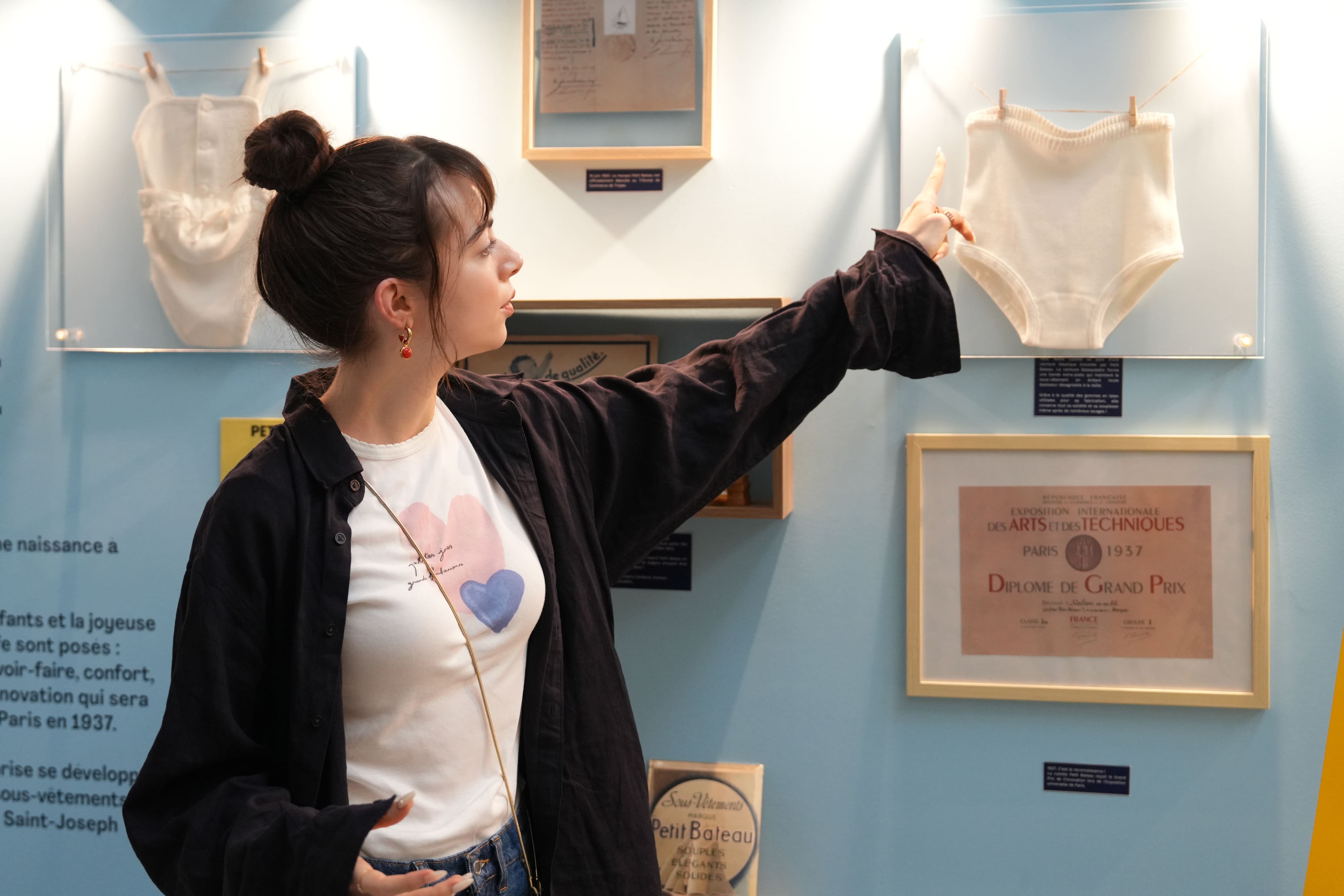 ここは1893年に創業者ピエール・バルトンが工場を設立したことから始まり、1912年に登場した白いTシャツや1918年の「プチ・キュロット」の誕生、さらには1937年のパリ万博でのグランプリ受賞など、ブランドの節目となった出来事が多くの貴重な資料や写真が展示されています。